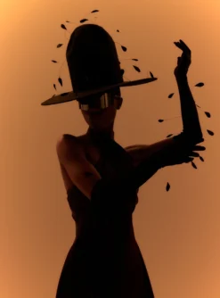 The Ally is a sleeveless floor length gown with draped asymmetric peplum and wide exaggerated neckline.