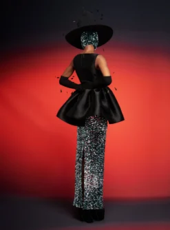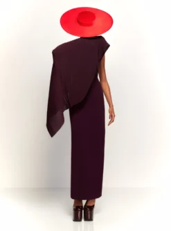 The Marcie is a one shoulder mini style with a softly flared drape sleeve.