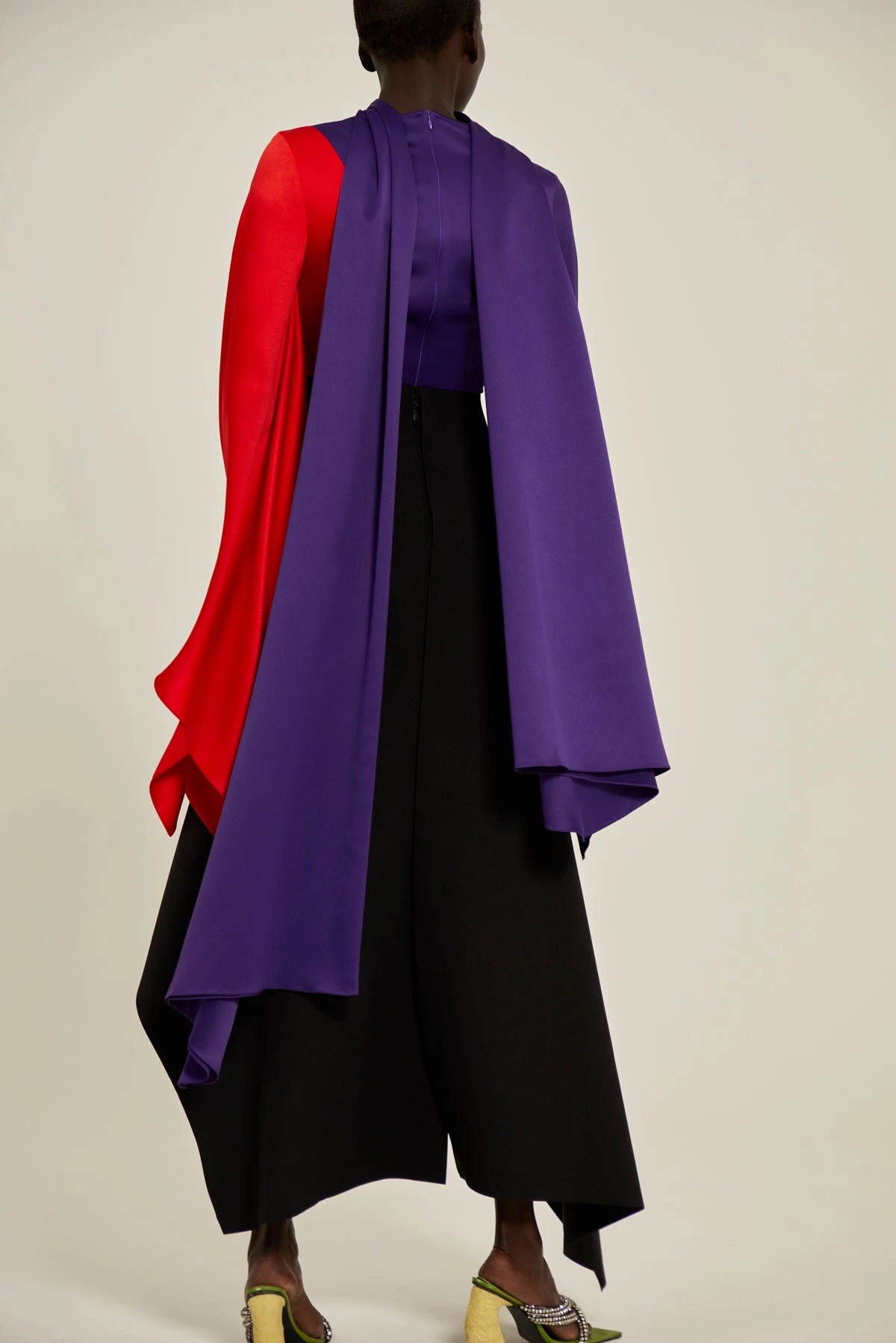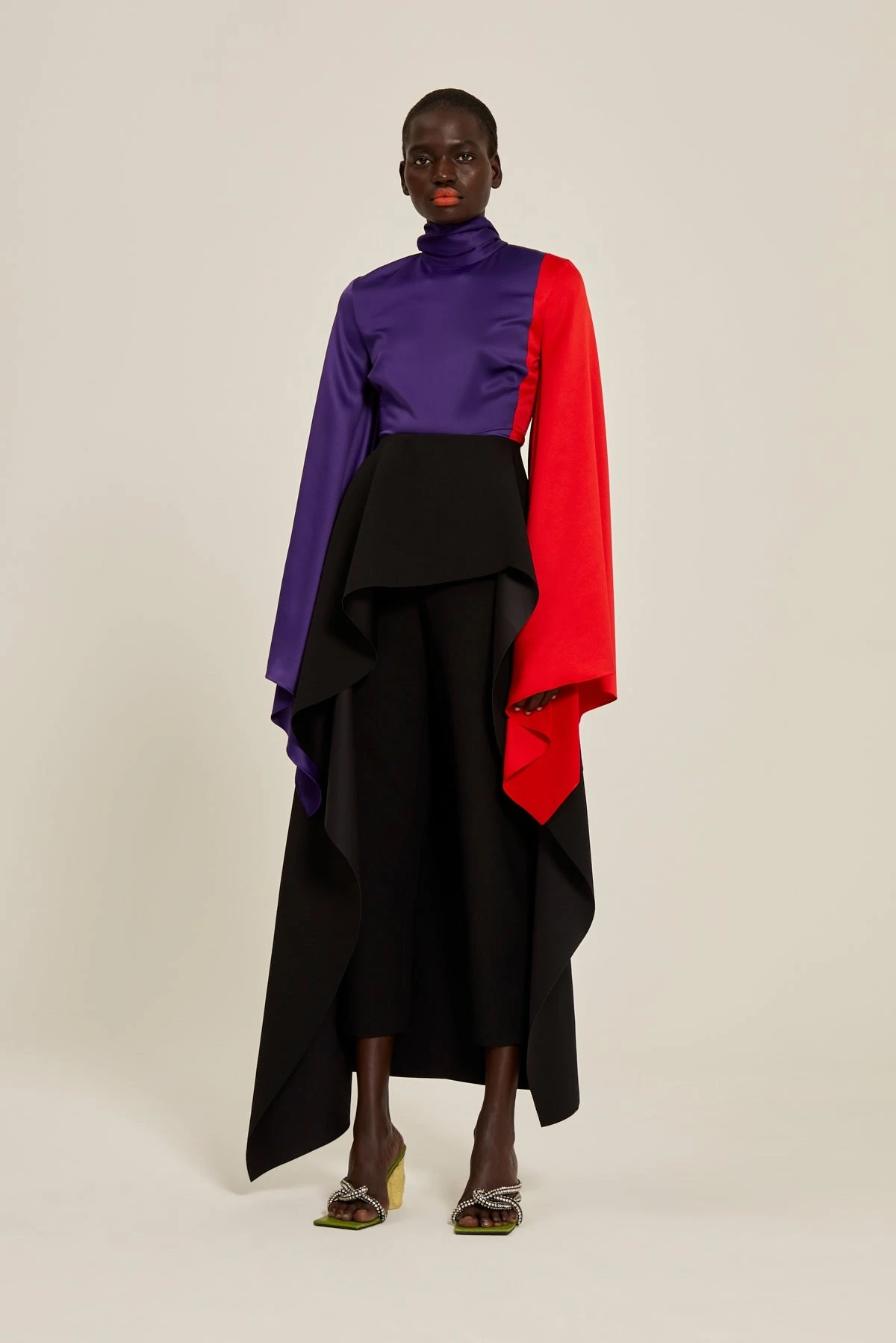 The Tahoe features a slim trouser overlayed with a laser-cut asymmetric peplum.